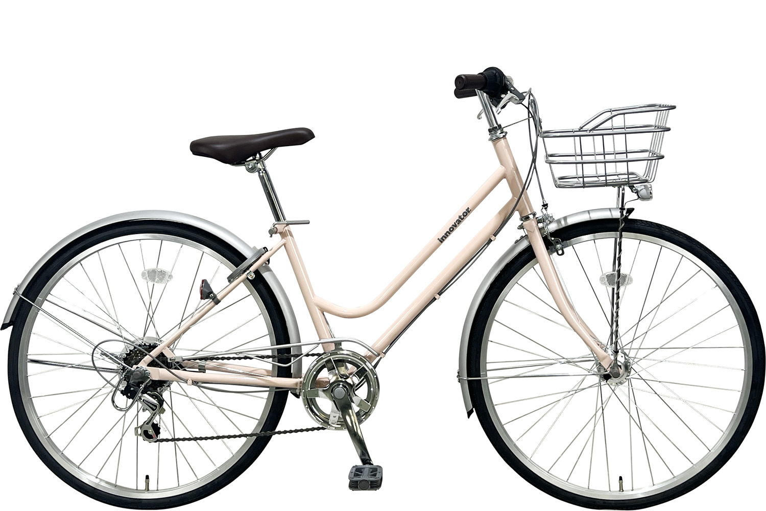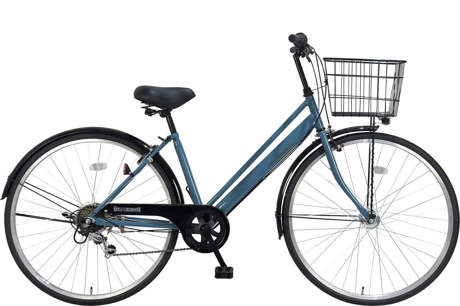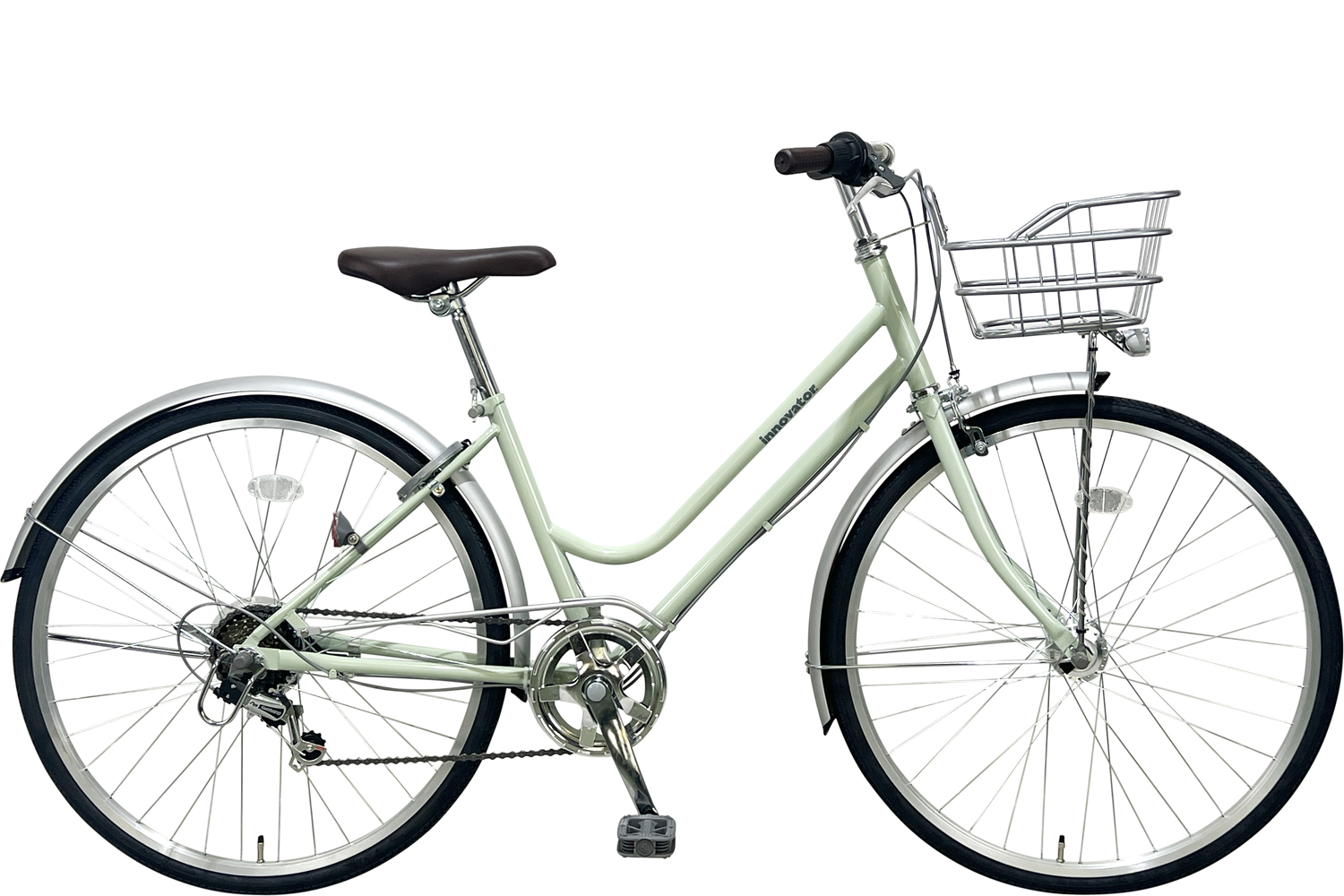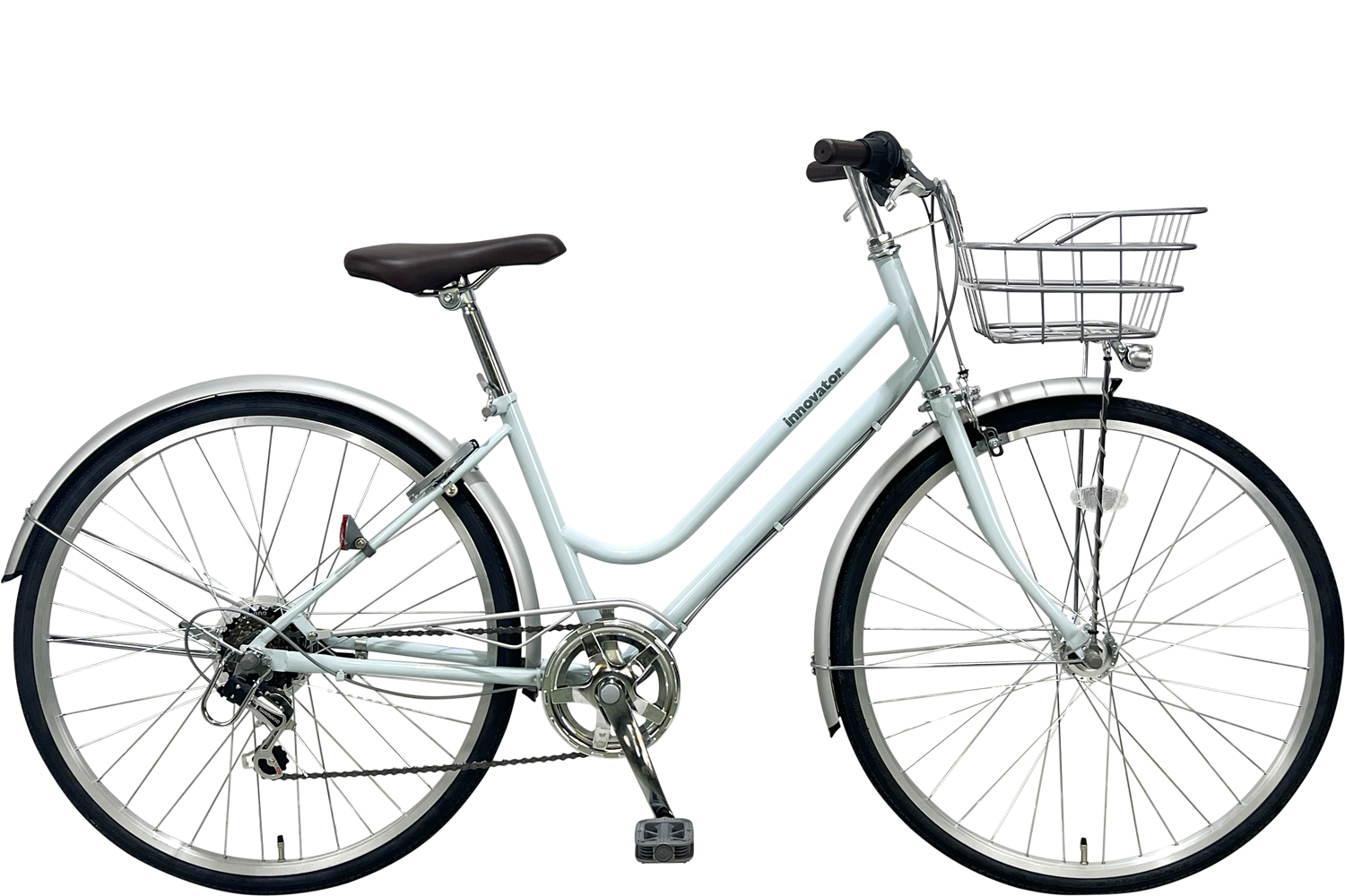 ダイニチ | イノベーターシティ276 | スチールフレーム ステンレカモメ型ハンドル 外装6段変速 ハブダイナモ式LEDオートライト 1本スタンド ワイヤーカゴ バンドブレーキ |