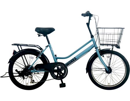 通勤通学用の低価格自転車 スチールフレーム 黒ハンドル ブロック LEDダイナモライト 1本スタンド ワイヤーカゴ バンドブレーキ |