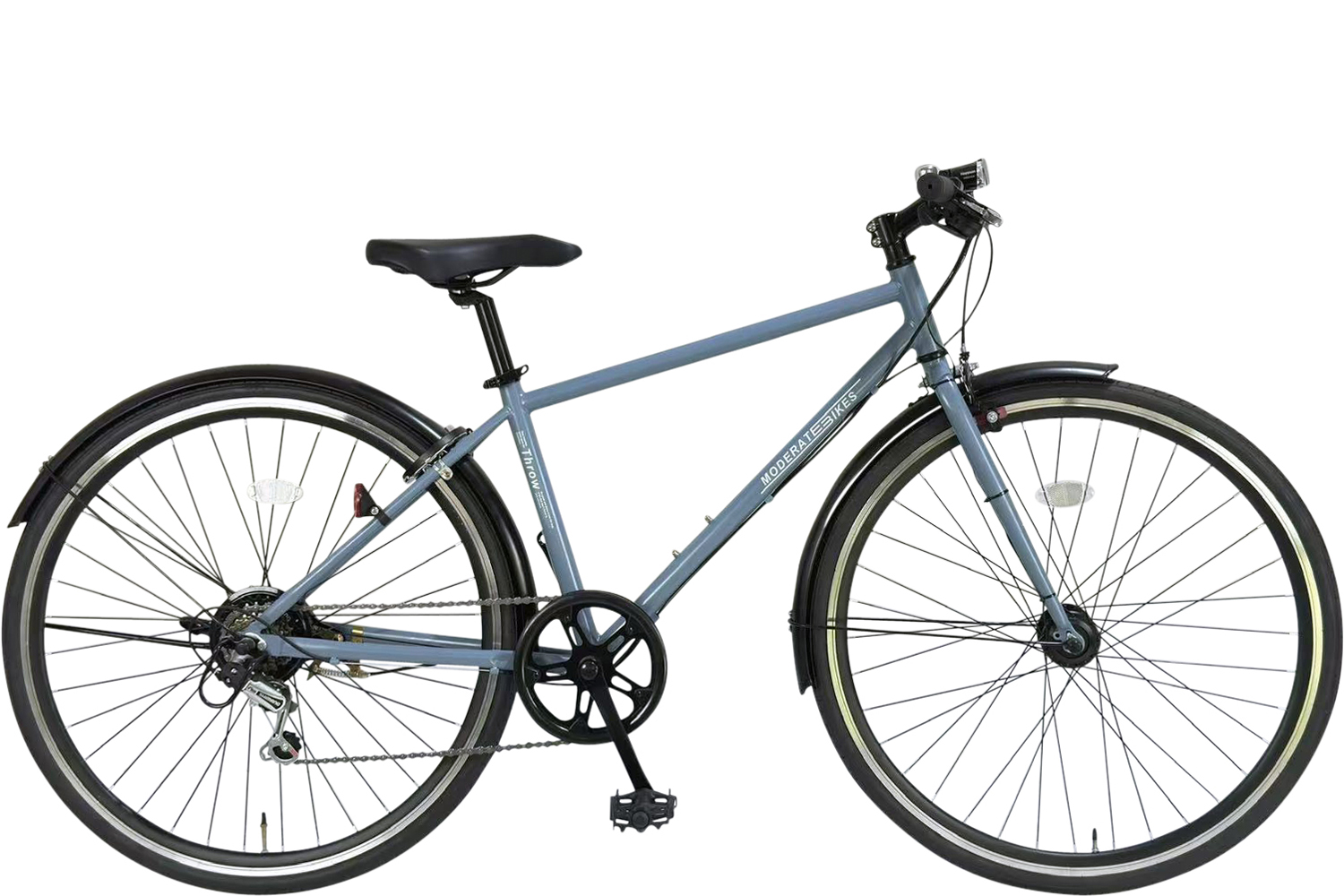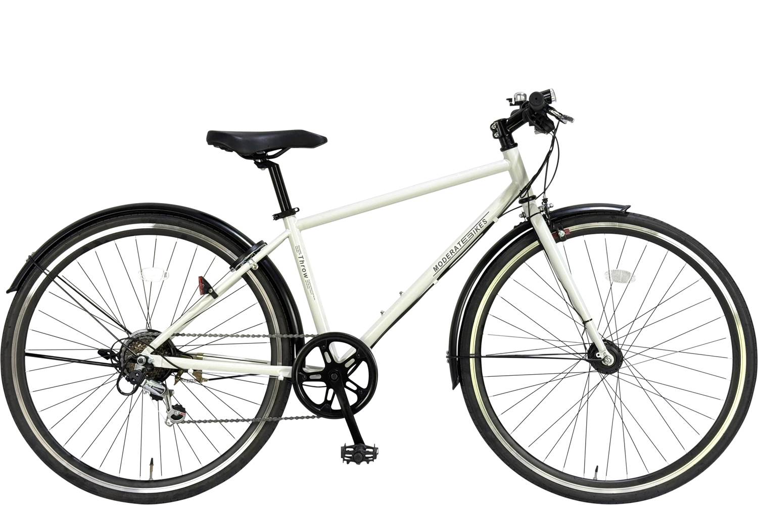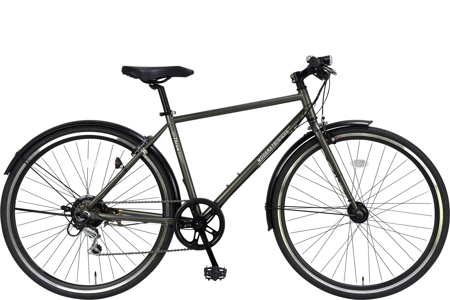 スチールフレーム シートチューブ長460mm 外装6段変速 1本スタンド 重量- ハブダイナモLEDライト 普段乗りに適した泥除け付き 前後キャリパーブレーキ 鍵なし 但し、長期在庫品のワイヤー錠プレゼント (なくなり次第終了) |