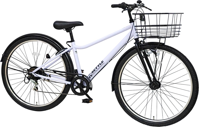 通勤通学用、フル装備 スチールフレーム ステンレスハンドル LEDハブダイナモ式ライト スチールワイヤーカゴ 両立スタンド ローラーブレーキ(リア) クラス27リアキャリア BAA対応 |