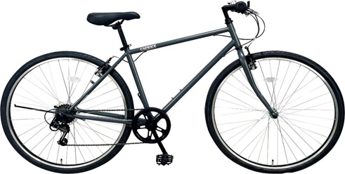 安価なクロスバイク スチールフレーム 460mm(シートチューブ) 外装6段変速 1本スタンド 重量14.0kg ライト、鍵なし |